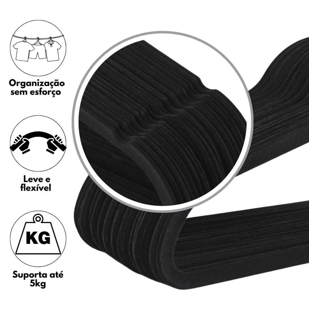 O veludo impede que as roupas escorreguem pela sua estrutura, mantendo-as sem amassados e organizadas.